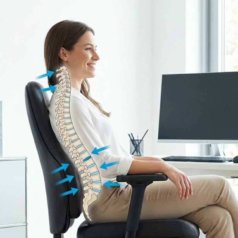 Eine von Orthopäden geforderte Körperhaltung wird durch eine konsequente Anpassung des Rückenlehnen- und Sitzflächenprofils erreicht.